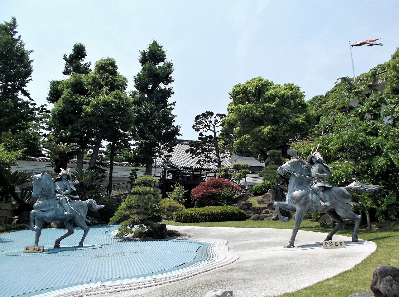 神戸市須磨区須磨寺町四丁目の須磨寺に「源平の庭」がある。平敦盛と熊谷直実が向かい合い、『平家物語』巻第九「敦盛最期」で描かれる場面を再現している。