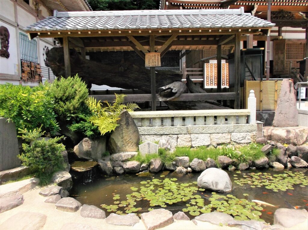 須磨寺に戻って境内を散策しよう。「敦盛卿首洗池」と「源義経卿腰掛松」がある。