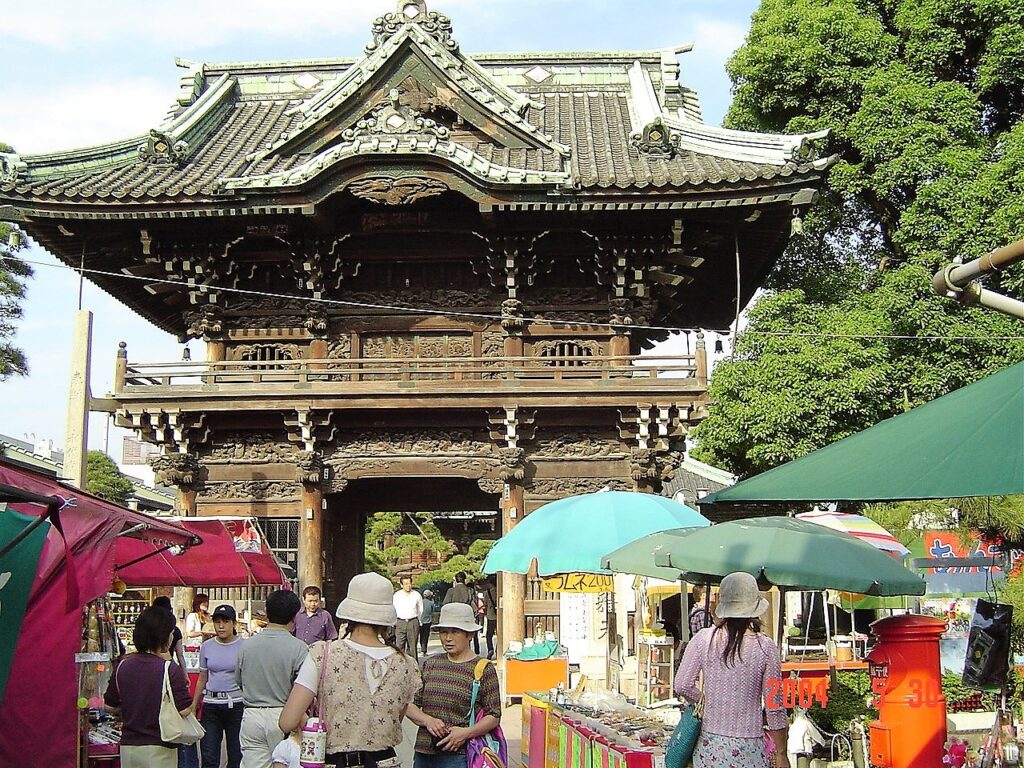 写真は参道入口と「二天門」である。明治29年建築の「二天門」は、日光の陽明門を思わせる重厚な造りで、圧倒的な存在感がある。文化的景観の重要な構成要素の一つだ。参道入口に掲げられている提灯には「高木屋」「松屋の飴」「い志い」「亀屋」「大和屋」「ゑびす屋」「市河屋」「川千家」と書かれている。いずれの店も重要な構成要素である。「帝釈天で産湯を使い」で紹介した「御神水」もそうだ。