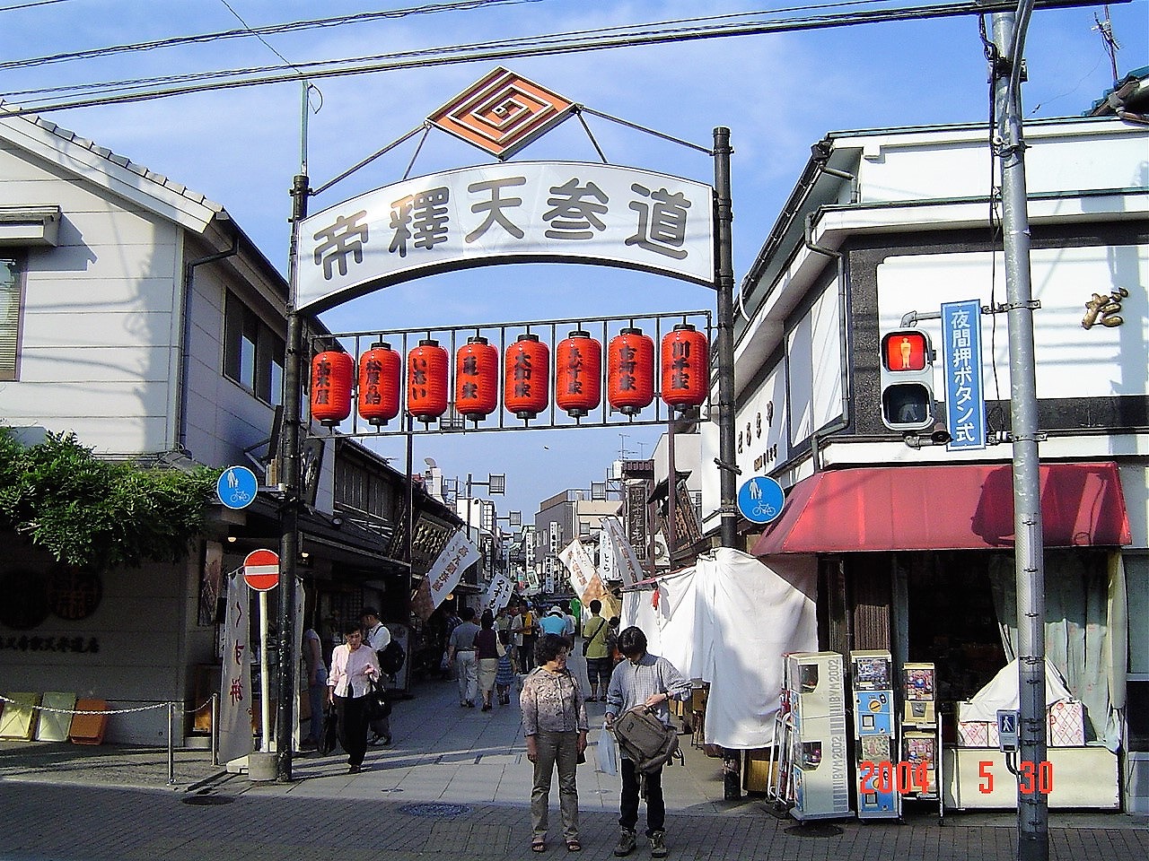 写真は参道入口と「二天門」である。明治29年建築の「二天門」は、日光の陽明門を思わせる重厚な造りで、圧倒的な存在感がある。文化的景観の重要な構成要素の一つだ。参道入口に掲げられている提灯には「高木屋」「松屋の飴」「い志い」「亀屋」「大和屋」「ゑびす屋」「市河屋」「川千家」と書かれている。いずれの店も重要な構成要素である。「帝釈天で産湯を使い」で紹介した「御神水」もそうだ。