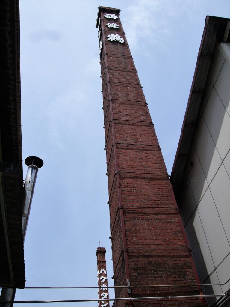 西條鶴と白牡丹の煉瓦造煙突である。赤レンガの煙突は白壁の酒蔵とともに、酒都西条の象徴として親しまれている。