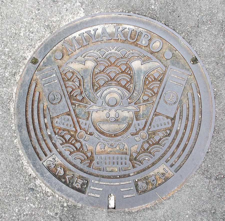 と思ったら、マンホールの蓋にいた。旗印が「丸に上の字」なので、村上海賊の坊や(?)だと分かる。これは旧宮窪町のキャラクターで「のしまくん」という。三島村上氏のなかでも主流の能島水軍の一員なのだろう。