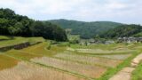 計画高水位とは、堤防が耐えることができる水位の最大値をいう。ということは、めったにそんなことにはならず、普段は広い広い河川敷の中を普通の川が流れているという景色である。しかも河川敷に集落があって、ふつうに生活が営まれている。