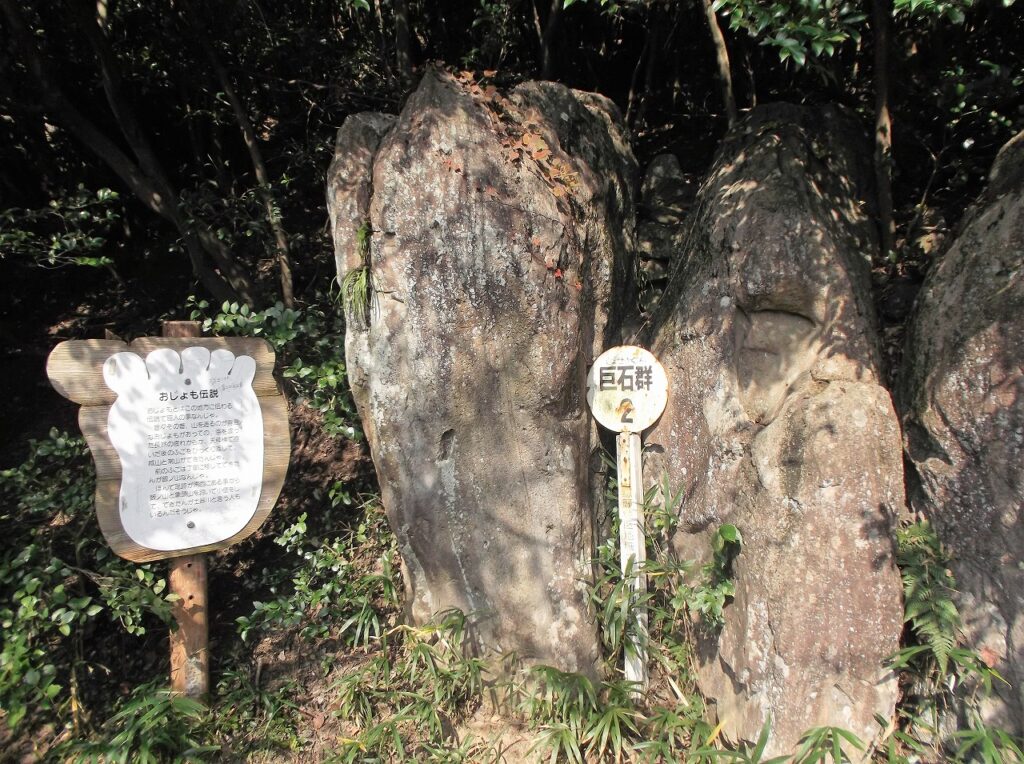 坂出市と丸亀市の境に位置する飯野山の山頂に「おじょもの足跡」がある。