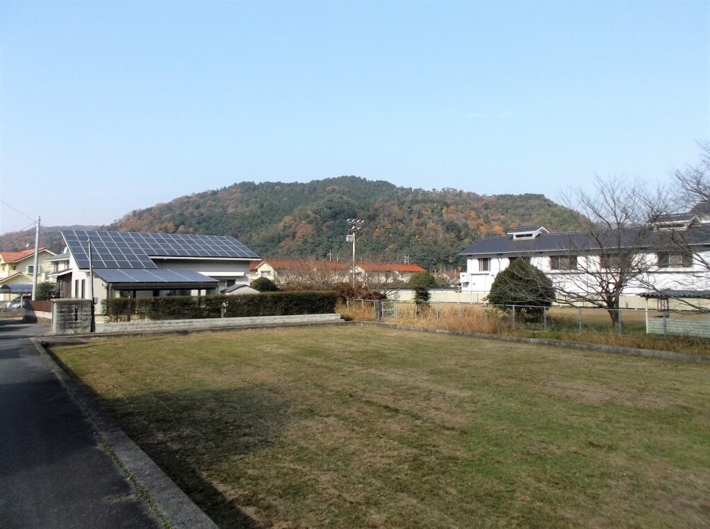 写真正面に見える山に郡山本城がある。この背後には江の川が流れている。この地にあった秀岳院は、毛利興元にゆかりがあるという。どのような関係があったのか。「広報あきたかた」2016年11月号の「安芸高田歴史紀行」に詳しく記述されている。一部を読んでみよう。