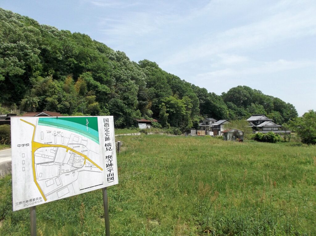 再び三原市下北方二丁目に戻ろう。梅木平古墳の解説文にも登場した「横見廃寺跡」がある。国指定の史跡である。