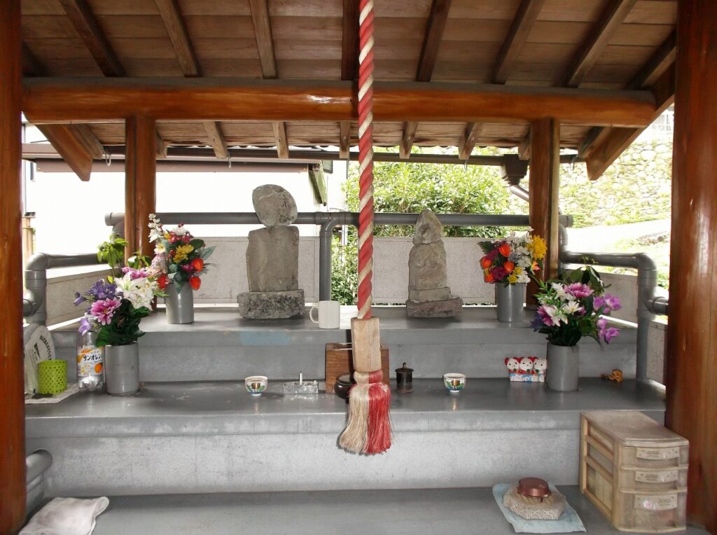 神河町根宇野に「首切り地蔵」がある。確かに首のところで割れたお地蔵さまが祀られている。