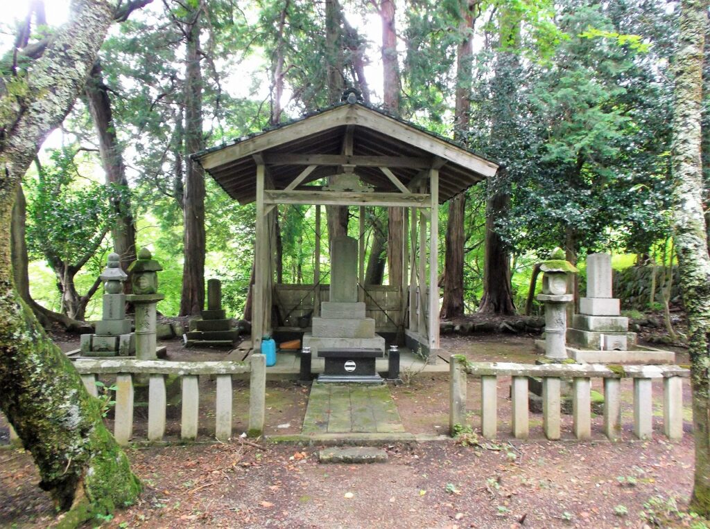 「村岡藩主山名氏墓所 桜山御廟」には、中央に十一代因幡守義済公、右に十二代男爵義路公、左に十三代男爵義鶴公の墓が並んでいる。