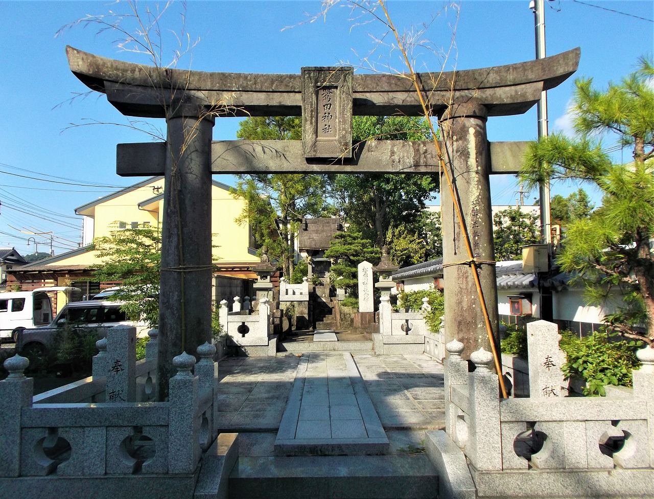 武雄市武雄町大字富岡に「鷺田(さぎた)神社」が鎮座する。社前の通りを進むと武雄温泉がある。