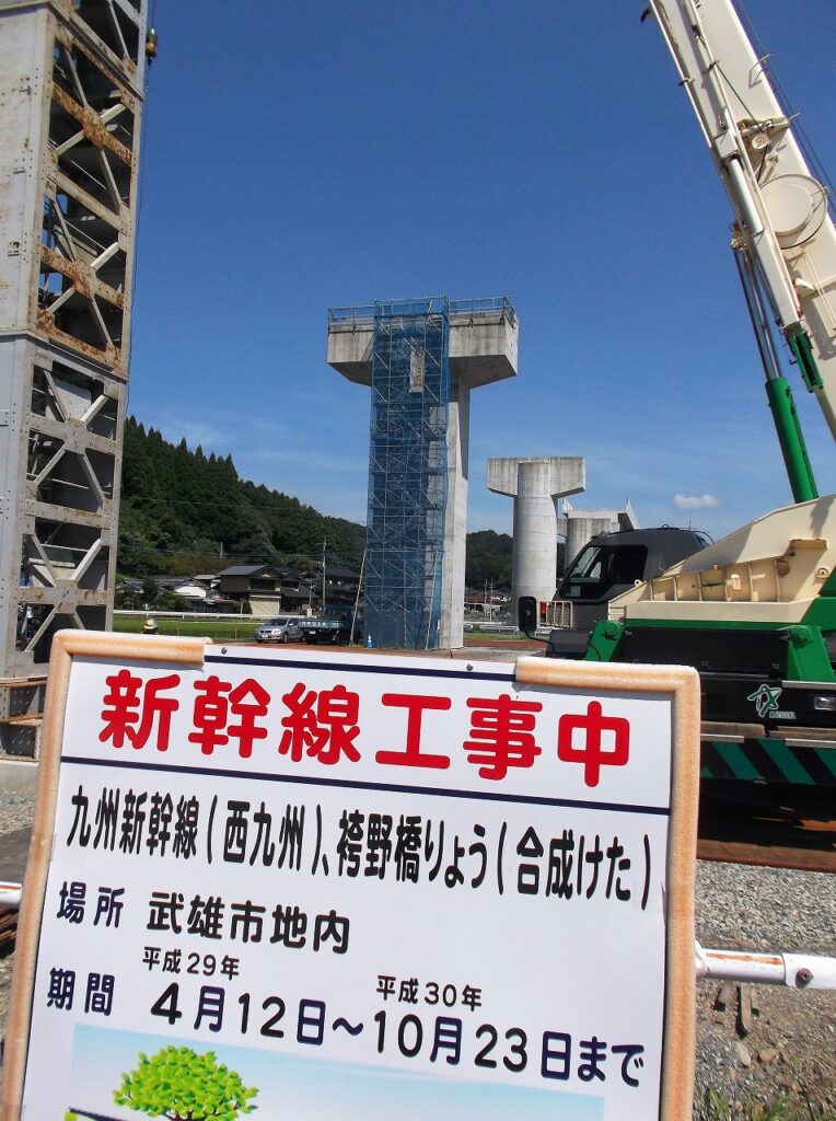 武雄市東川登町大字袴野で新幹線の袴野橋梁が建設されている。写真は武雄南インターチェンジ付近である。