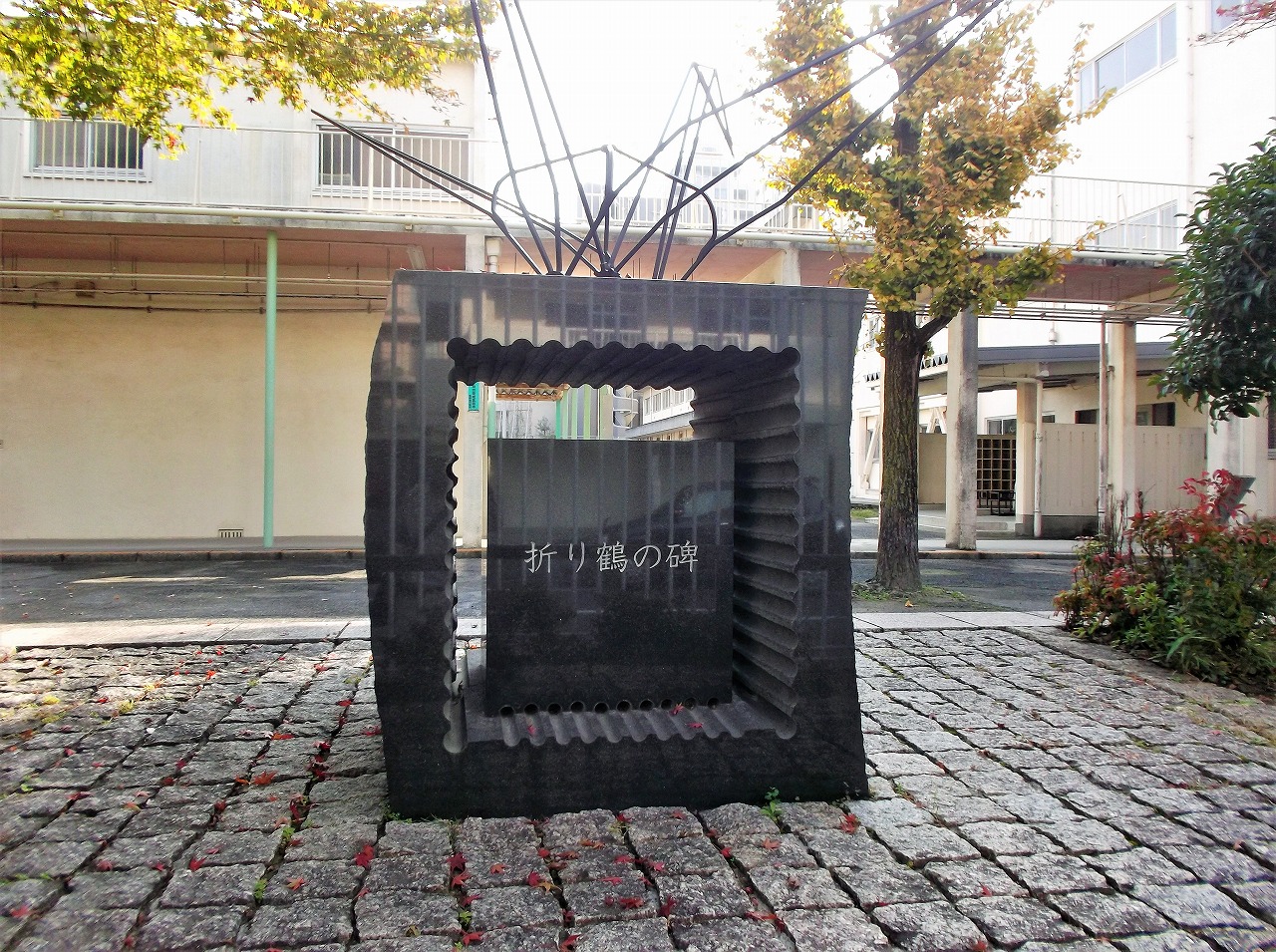 広島市中区上幟町(かみのぼりちょう)の市立幟町中学校に「折り鶴の碑」がある。