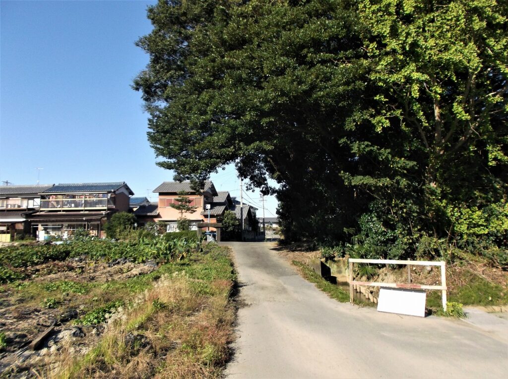 近くの道は平坦ではなく、少し盛り上がっている。かつての堤防の痕跡である。多芸輪中を構成する「下笠輪中」の堤防だったが、洪水の危険性が感じられなくなると取り除かれた。