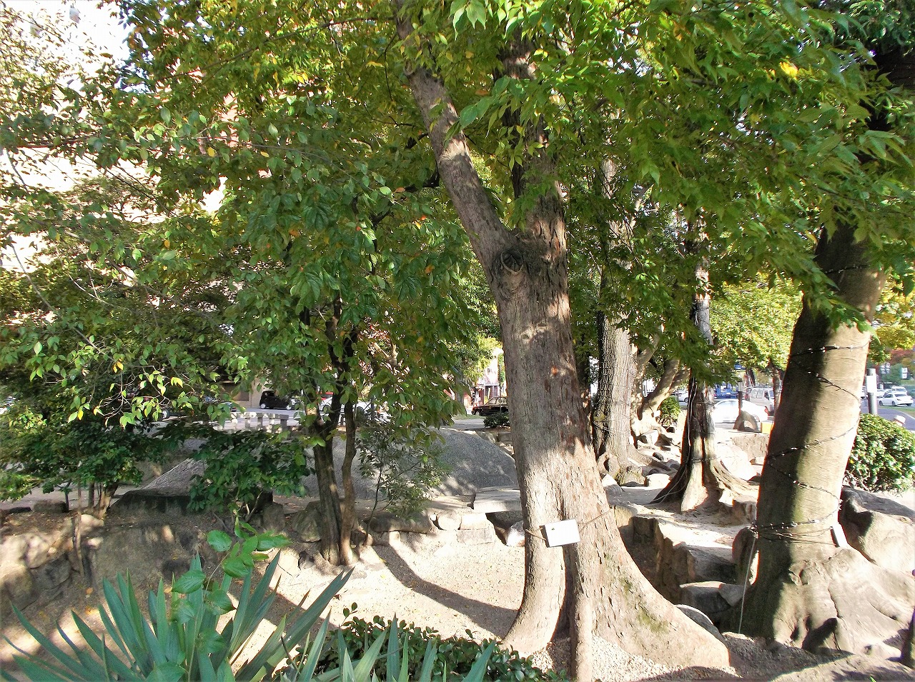 この岩礁は、広島城築城当時(1591年)海岸線であったこの付近に露出していたものです。又、国泰寺愛宕池の岩と一体のもので、このような岩礁が市街地に残っていることは、三角州発達の歴史をたどるうえで意味深いものです。