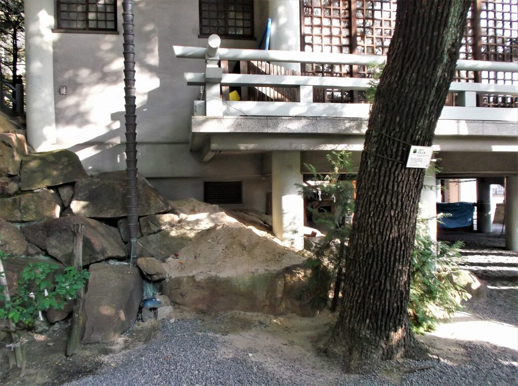 愛宕池の岩とは、ひと続きになっているらしい。昭和60年3月という前時代の説明板で広島市教育委員会は、次のように説明している。