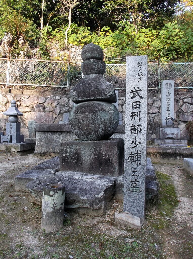 境内の墓地には「武田刑部少輔之墓」がある。ここは安芸の名族武田氏の菩提寺である。確かではないが「武田刑部少輔」が武田光和であるとすれば、安芸武田氏8代目で銀山城主、近隣勢力では尼子氏と親しかった。9代目の信実が天文十年(1541)に大内・毛利軍に敗れ、安芸武田氏は滅亡する。