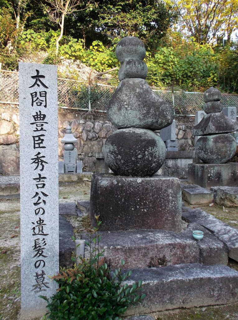 すぐ近くに「太閤豊臣秀吉公の遺髪の墓」がある。なぜ不動院に秀吉ゆかりの塚があるのだろうか。