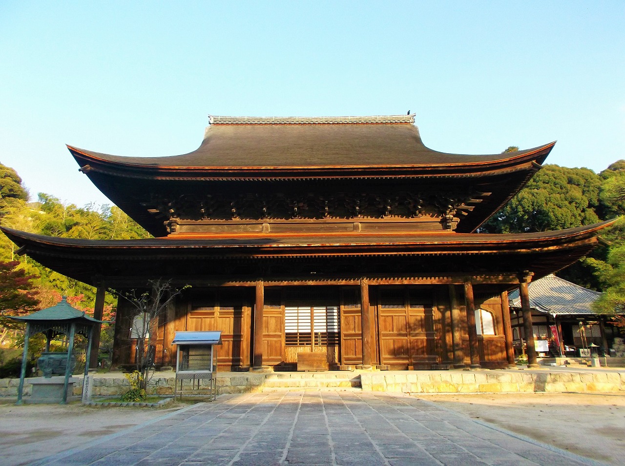 金堂の前にある「不動院楼門」も大迫力の建造物で、こちらは国指定重要文化財である。