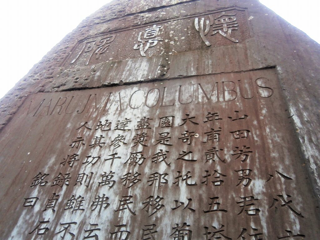 石碑をよく見ると「MARUJIMA COLUMBUS」と刻まれている。外国人のようだが、日本人である。説明板を読んでみよう。