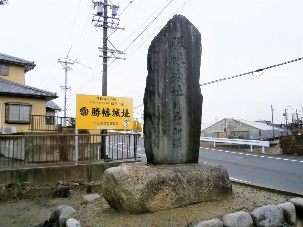 稲沢市平和町城之内に「勝幡城址」の大きな石碑がある。石材は安山岩に分類される硬い根府川(ねぶかわ)石で、大正四年の建立である。
