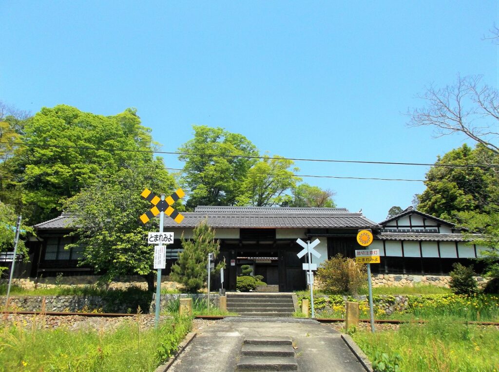 門前に遮断機のない踏切がある。「立石踏切」である。屋敷地をJR姫新線が通過しているのだ。