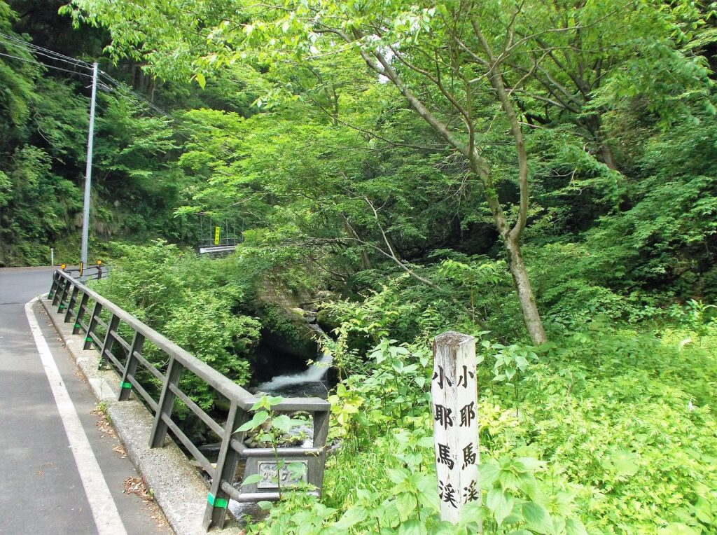 このあたりはの私都(きさいち)川は、ちょっとした渓谷美で「小耶馬渓(しょうやばけい)」と呼ばれている。ホンモノの耶馬渓は大分県の名勝で、奇岩や美しい滝で知られている。『恩讐の彼方に』で知られる青の洞門もそこにある。その景勝の名を借りた小耶馬渓について、説明板は次のように記している。