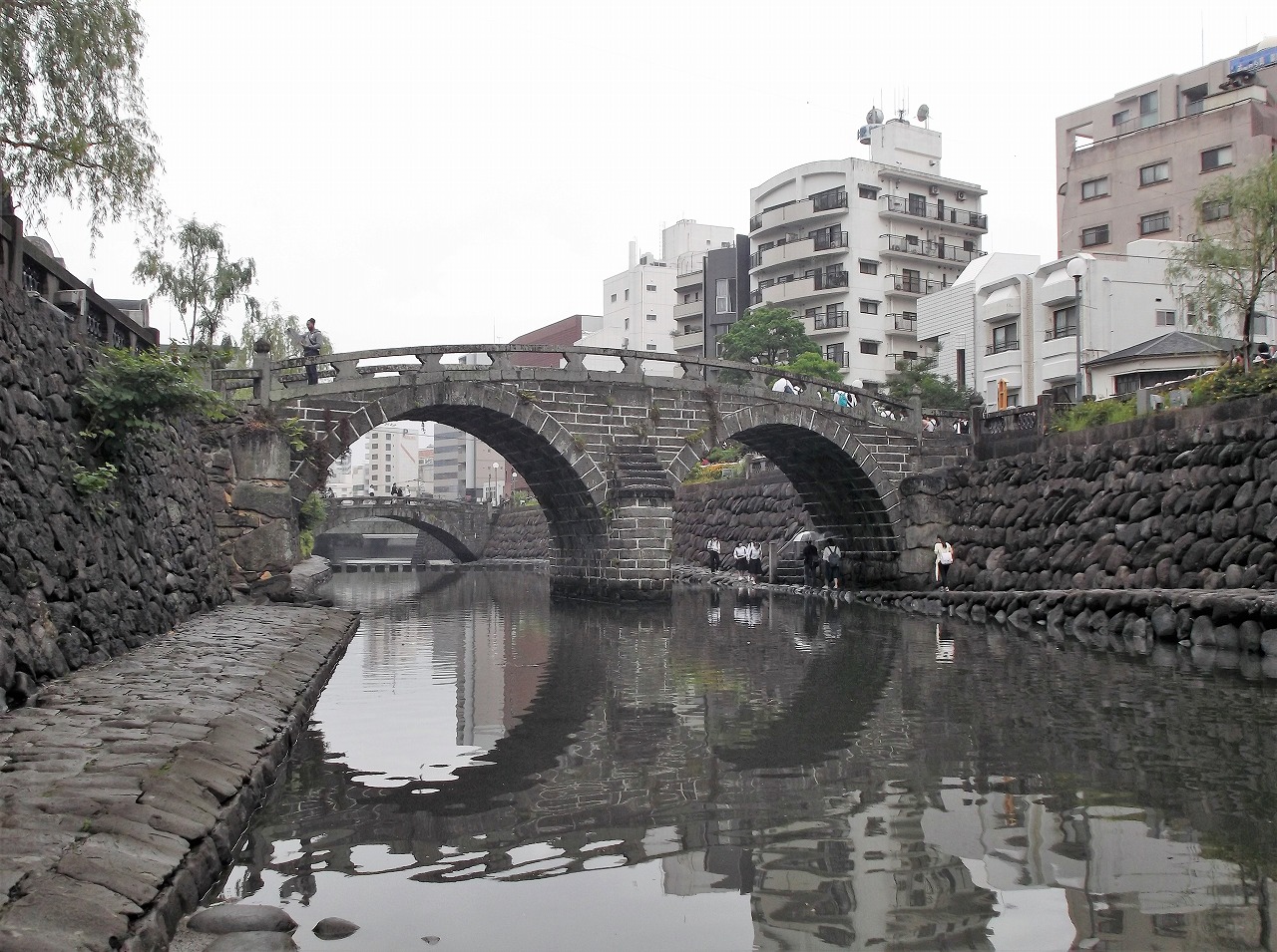 長崎市魚の町、栄町、諏訪町、古川町の境に「眼鏡橋」がある。確かにメガネに見える。国指定重要文化財である。