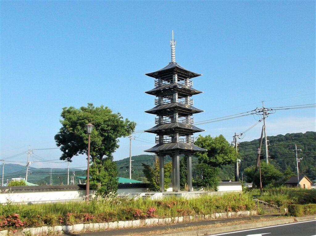 中国地方の道の駅人気ランキング1位に輝いたことがあるという「久米の里」が国道181号にある。多くの方が映え写真としてガンダムのモビルスーツを写しているが、私ひとりが金属製の五重塔に注目している。なぜここにあるのか。