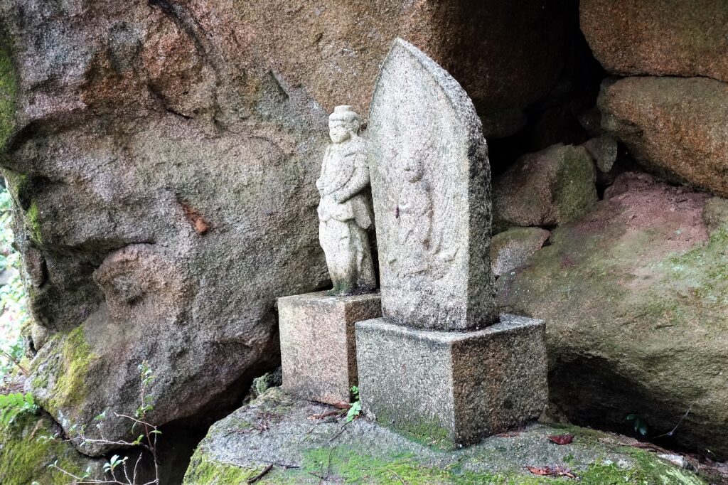 大岩刻の下方には、安政六年(一八五九)に安置された、道了尊の石仏が所在する。道了尊は道了薩埵・道了権現とも呼ばれる、神奈川県南足柄市にある曹洞宗最乗寺の守護神。開山の了庵慧明に従っていた妙覚道了が身を変じた。霊験あらたかとして広く関東地方を中心に信仰されており、岡山県西端に位置する当地での道了尊石仏は珍しい。