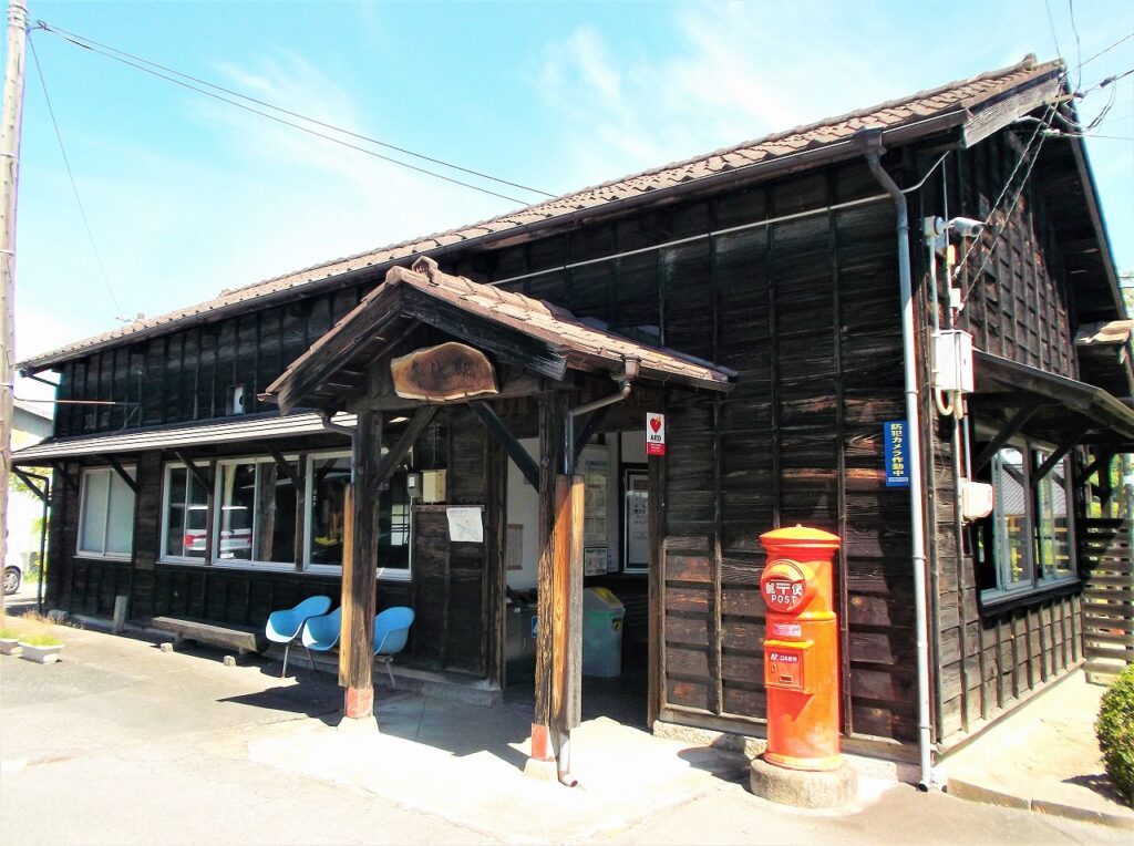 この郷愁漂う木造駅舎は、大正12年(1923)、津山駅と美作追分駅を結ぶ作備線の開業と同時に建てられた。外壁には押縁下見板張り(おしぶちしたみいたばり)の技術が使われている。日中の乗降客はそれほど多くないが、朝夕は津山や真庭へ通う高校生がよく利用している。