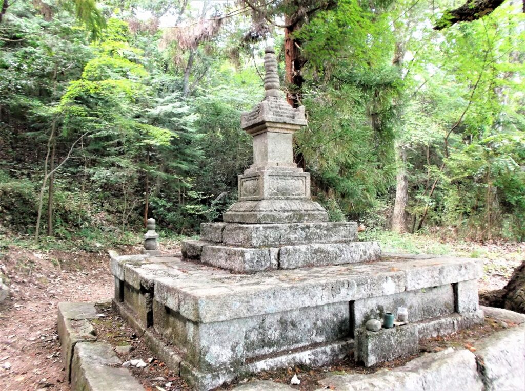 土肥実平は、壇ノ浦後の元暦二年に長門と周防の惣追捕使を追加され、山陽道の総責任者となった。このことを「中国追捕使」と呼んでいるのだろう。息子の遠平は名誉なことに、頼朝の娘を妻とすることができたが、妻は早世してしまう。妻の母親つまり頼朝夫人は、この地で娘の菩提を弔った。石塔は夫人の墓だという。