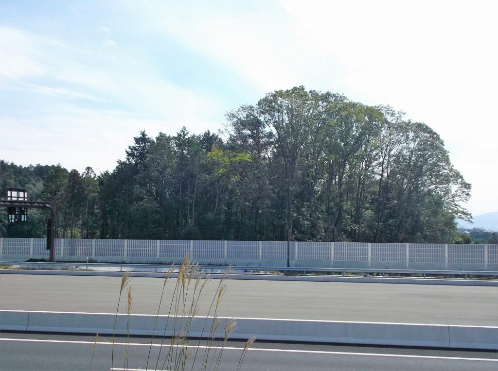 再び寺山の説明板のある場所に戻ろう。向かいのクルス山との間に新名神高速道路が通っている。平成29年にできたばかりの美しい道路だ。