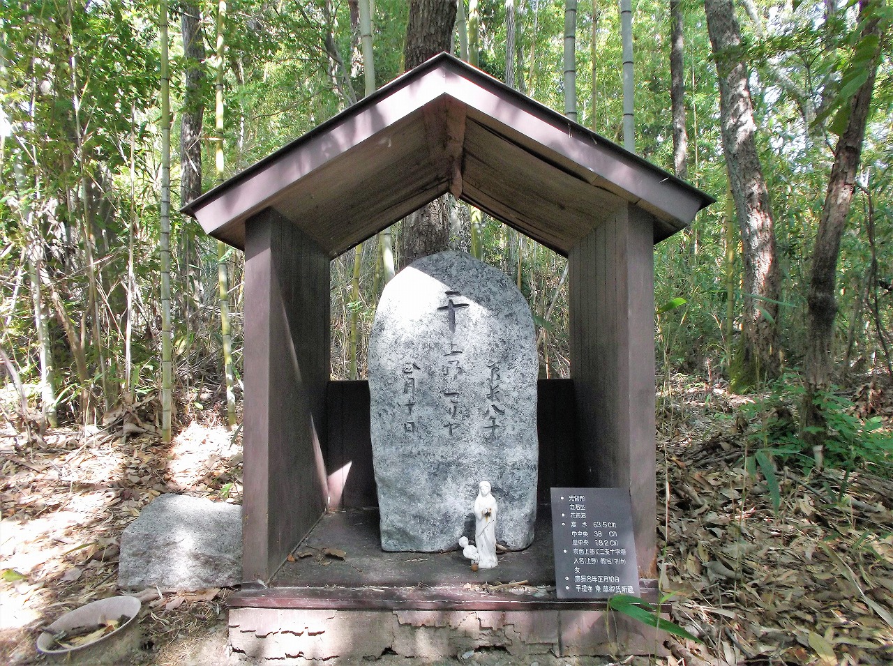 事実、キリシタン墓碑が見つかっており、二支十字と「慶長六年 佐保カラヽ 四月一日」が刻まれている。ザビエル来日が1549年、慶長六年は1601年、ザビエルの列聖は1622年である。