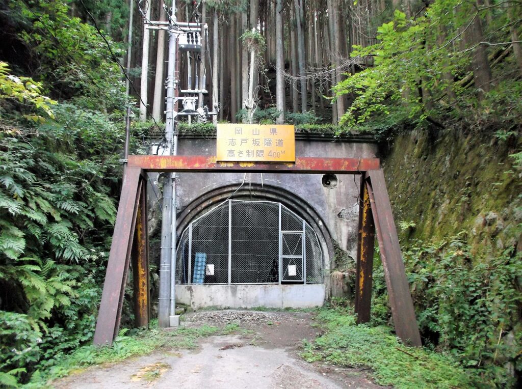 岡山県英田郡西粟倉村坂根に「旧志戸坂隧道」の入口がある。1本目のトンネルである。
