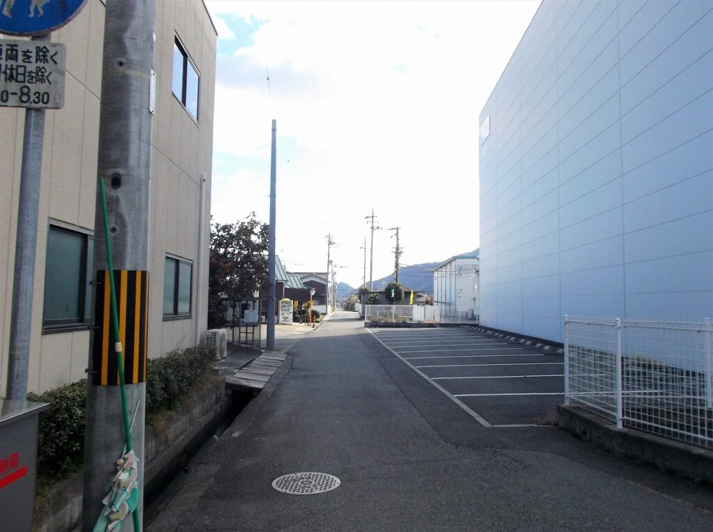 この場所は、始発駅の新宮町駅があった所で、ここから南へまっすぐのびる道は線路の跡です。今でもこの道を地元では電車道と呼んでいます。