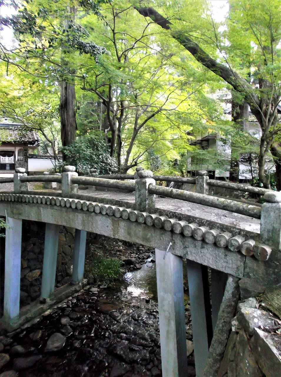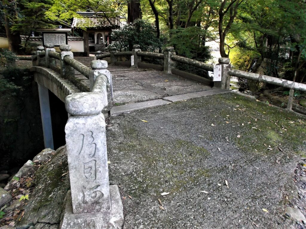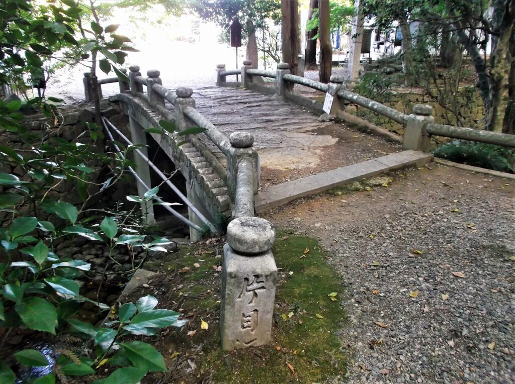 橋の親柱には「片目河」と刻まれている。橋の名を「無垢橋(むくばし)」といい、国の登録有形文化財に指定されている。すぐ近くに「両幡の椋」とも「誕生椋」とも呼ばれる大きなムクノキがあることから名付けられたらしい。大正九年(1920)建設の割には古く見えるが、古い木橋を模した石橋だからだろう。