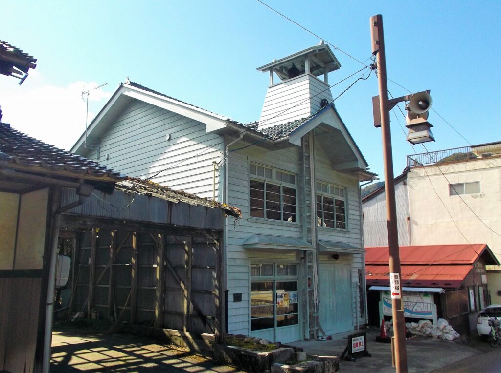 石谷家住宅の前に「智頭消防団本町分団屯所」がある。国の登録有形文化財で、昭和十六年建築の瀟洒な洋風建築である。中に入ってみよう。
