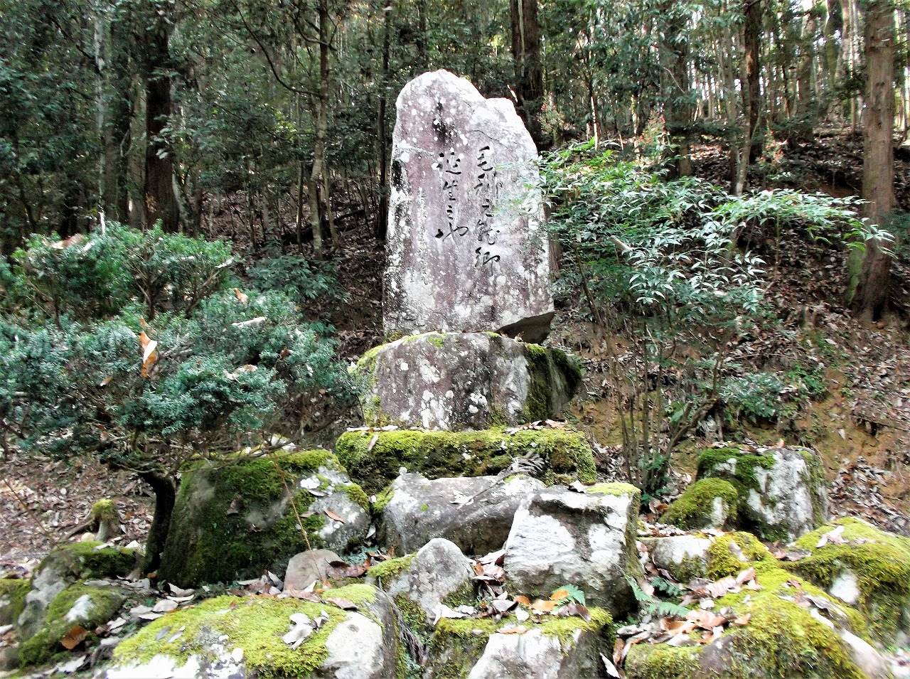 この城は元就の母の実家だったのだ。居館があった「土居の壇」には昭和13年に石碑が建てられた。碑には「毛利元就卿誕生之地」と刻まれ、揮毫は27代当主の「従三位勲三等男爵福原俊丸」である。