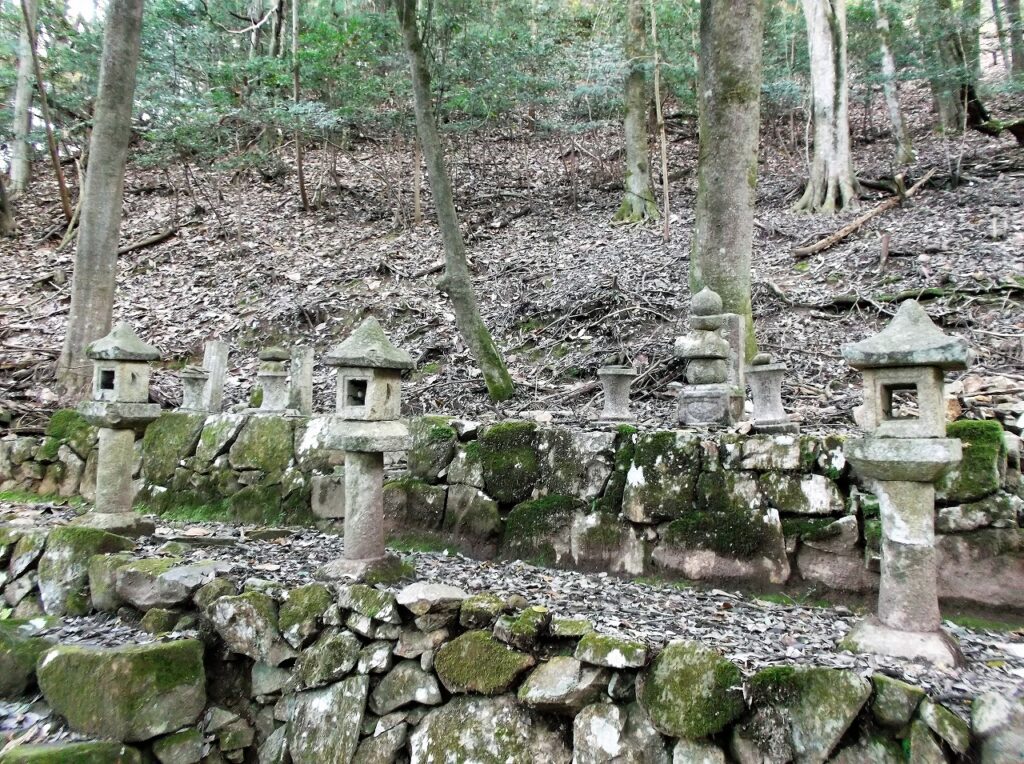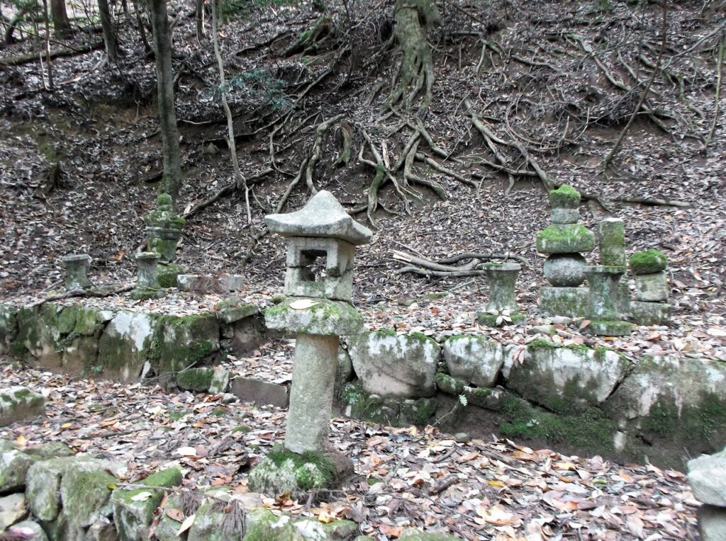 苔むした石垣や五輪塔が往時の繁栄を伝えている。墓所は二か所あり、上の写真が東墓所で下が西墓所である。東墓所には釈迦堂という建物もある。詳しいことが説明板に記されているので読んでみよう。