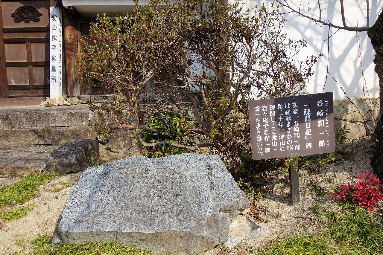 津山市小田中の地蔵院前に「谷崎潤一郎『疎開日記』碑」がある。