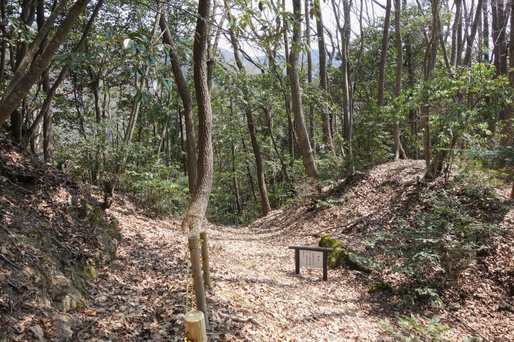 これは二の丸の手前にある大きな堀切である。山城ならではの遺構だ。