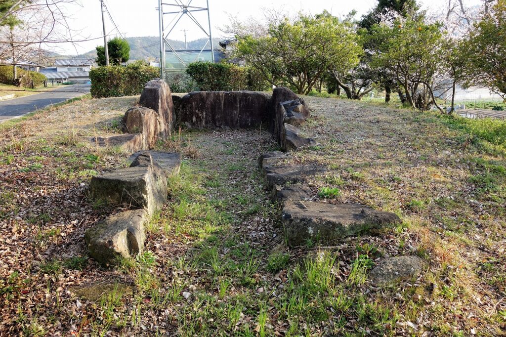 現地では、西向きに二段階築された横穴式古墳であったが残念ながら天井石は失われていた。