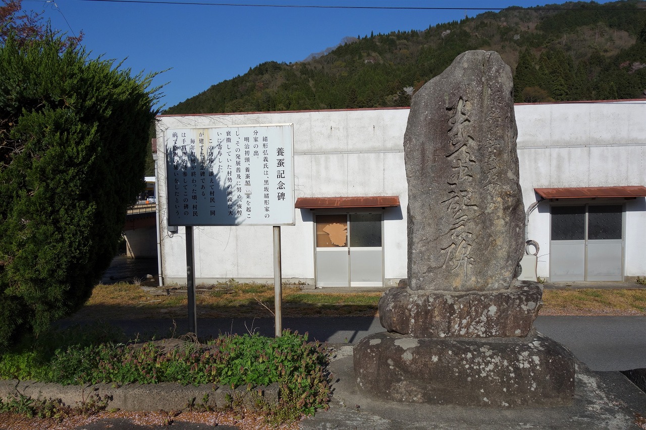 鳥取県日野郡日野町黒坂に「養蚕記念碑」がある。「報緒形弘義君功労養蚕記念碑」と刻まれている。