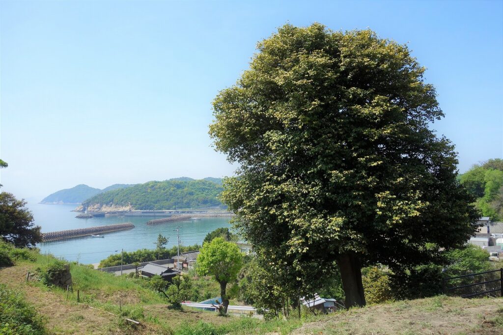 ツバキはうちにもあって、毎年冬には可憐な花を咲かせている。そのツバキのうち最古にして最大なのが岩手県の天然記念物「大船渡の三面椿」で、樹齢およそ1400年、根回り8mという巨樹だそうだ。本日はそこまでではないが、瀬戸内の港を静かに見下ろしている大きなツバキを紹介しよう。