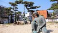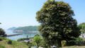 この美しく小さな入り江に、下関と並び称されるような賑わいが本当にあったのか。藤原純友の乱の勝敗を左右する戦勝祈願が本当に行われたのか。さざ波が優しく音を立てるばかりで、かつての様子は想像すらできない。時計を見ればけっこういい時間だ。乗る舟のない私は坂を上って帰途についた。VIPが上ったかもしれないこの坂を。