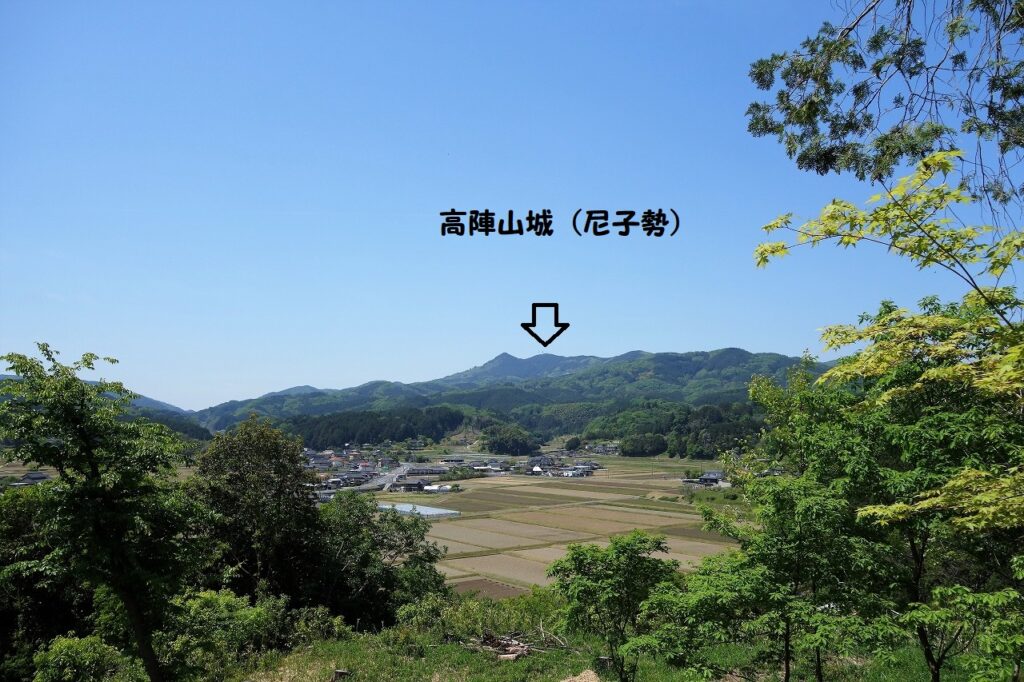 城から南西方面に「高陣峰(高陣山城)」がある。鬼山城の玉置玄蕃守が鬼ならば、高陣峰の尼子照平は桃太郎なのだろうか。戦ったのはいいが、共に討死している。そこで『三保村誌』の記述を確かめてみると、次のように記されていた。