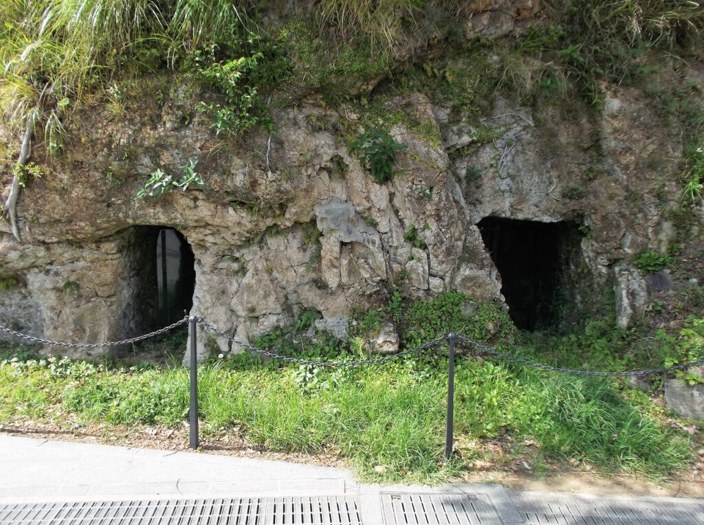 以前に山里小学校の防空壕跡を紹介したことがある。保存のためコンクリートで補強整備され、生々しさが失せてしまっているが、松山町の防空壕跡はかつての面影をよく残している。