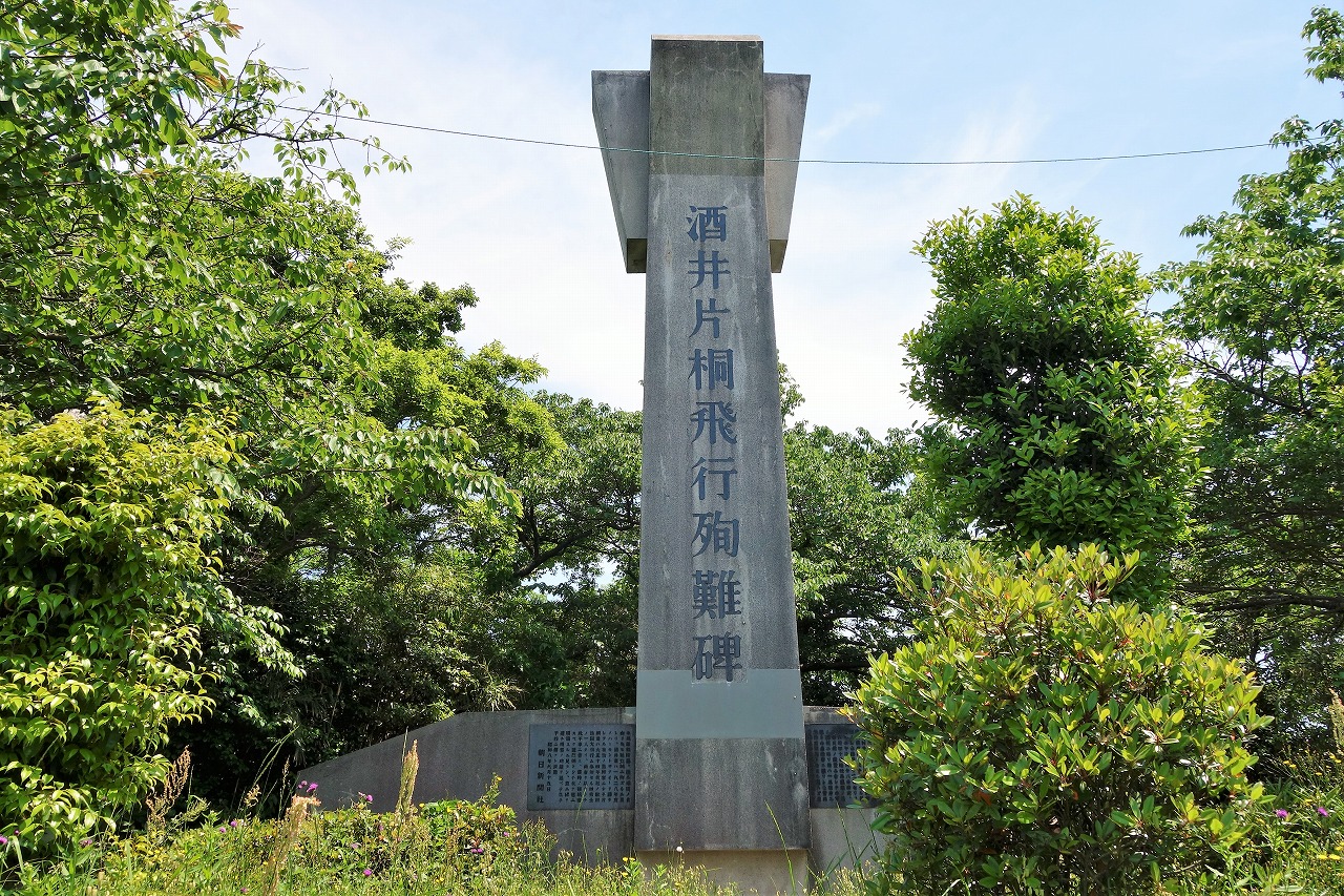 鳥取県東伯郡琴浦町八橋に「酒井片桐飛行殉難碑」がある。よく見ると飛行機が機首を下にしているではないか。ほぼ実機大だそうだ。