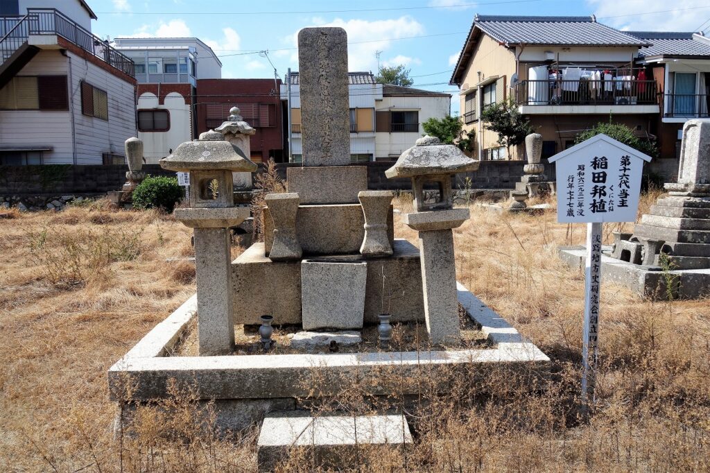 洲本市栄町三丁目の江国寺の稲田家墓所に「稲田邦植の墓」がある。昭和六年に77歳で没した。