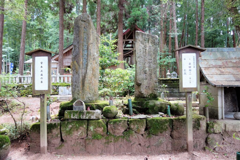 神社の右手に「宮本武蔵の墓」「武蔵両親の墓」がある。