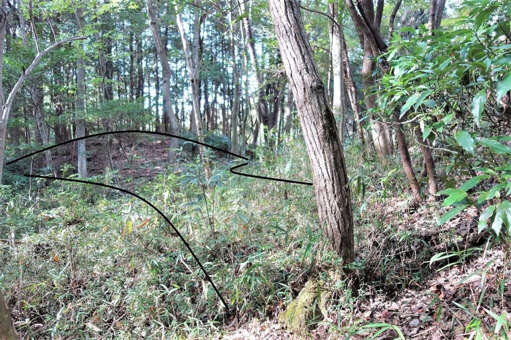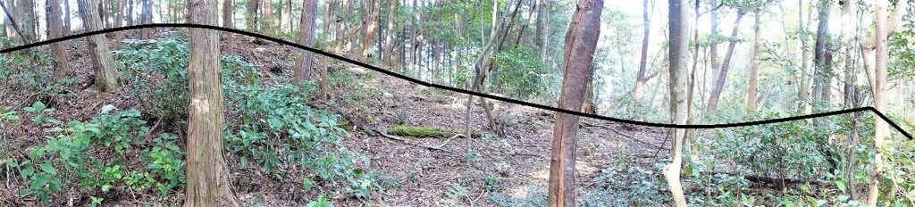 試みに傾斜量図で確かめると、見事に前方後円形が浮かび上がっている。グーグルマップやヤフー地図ではさっぱり分からず、地理院地図でも標準地図では判別できない。航空レーザ測量のおかげで山中における遺跡が見つけやすくなった。説明板を読んでみよう。